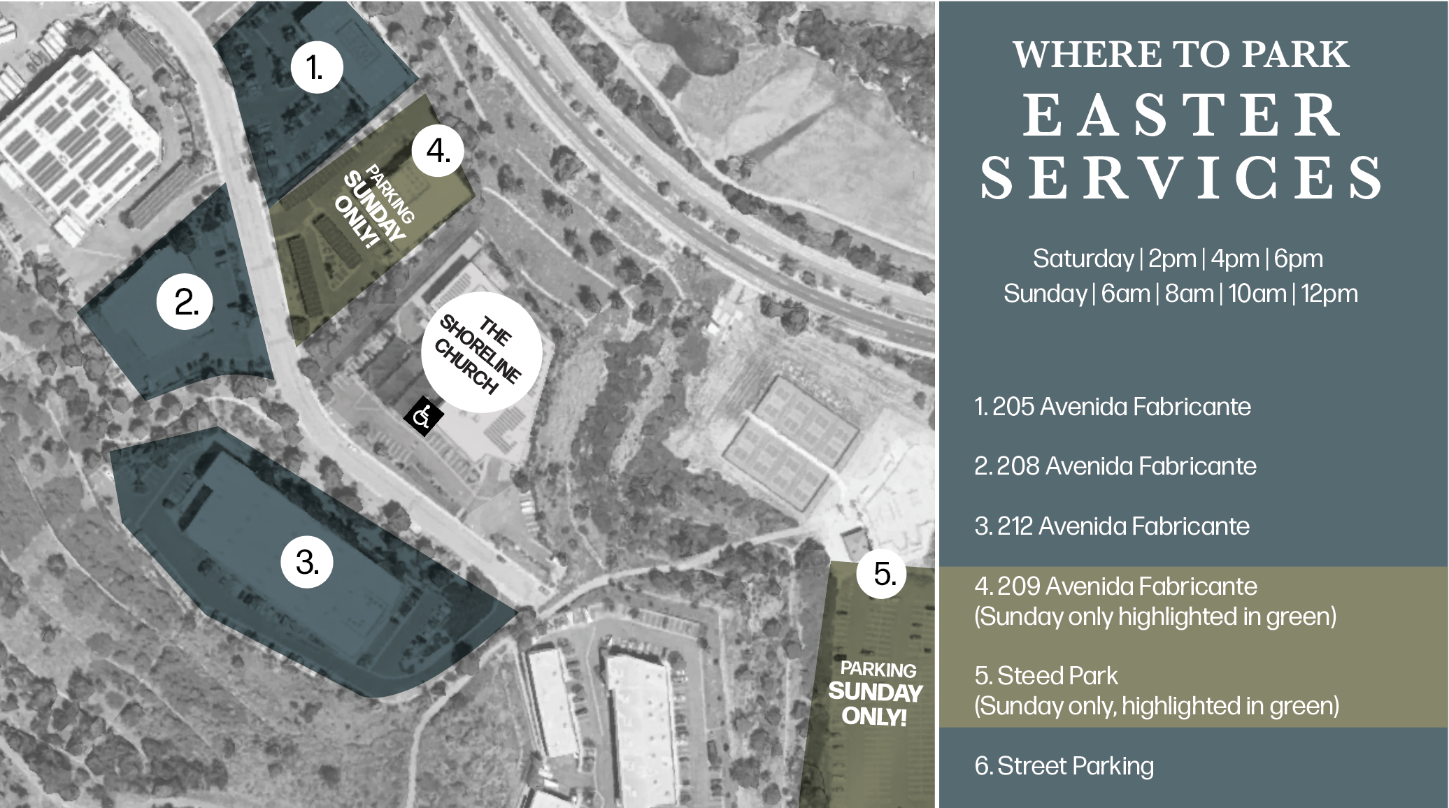 Sunday, April 5th : 6 am, 8 am, 10 am, & 12 pm
