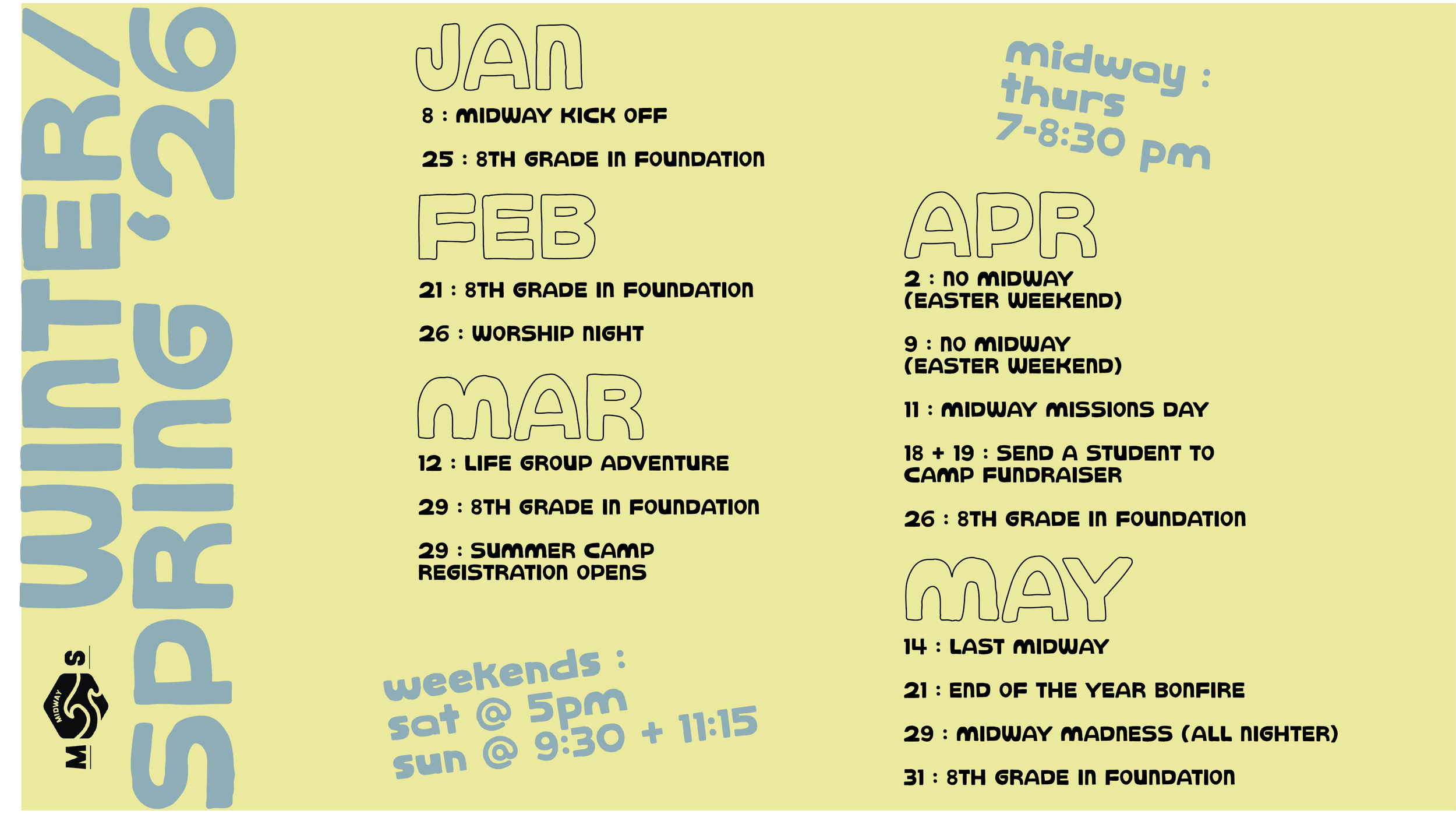 We’re so excited to be gathering with you all! Join us upstairs in the Midway Hangout Room for services.